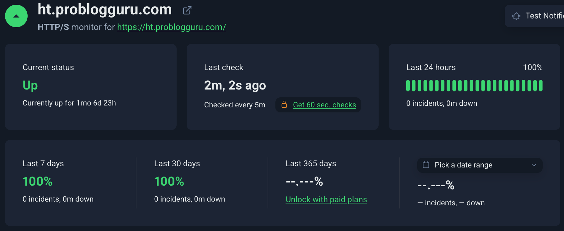TTFB was 50 ms, FCP was close to 700 ms, and LCP crossed 900 ms. Uptime was godlike without stress.
