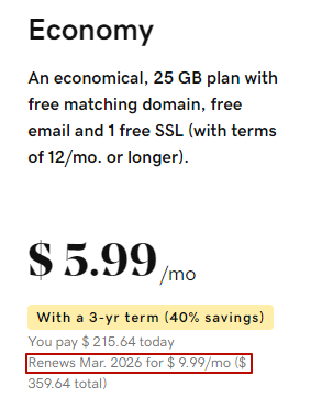 2. Double renewal fee – Whether you choose a 1-year plan, 2-year plan, or 3-year plan, they will charge $9.99 per month (+40%). It will burn your whole pocket.