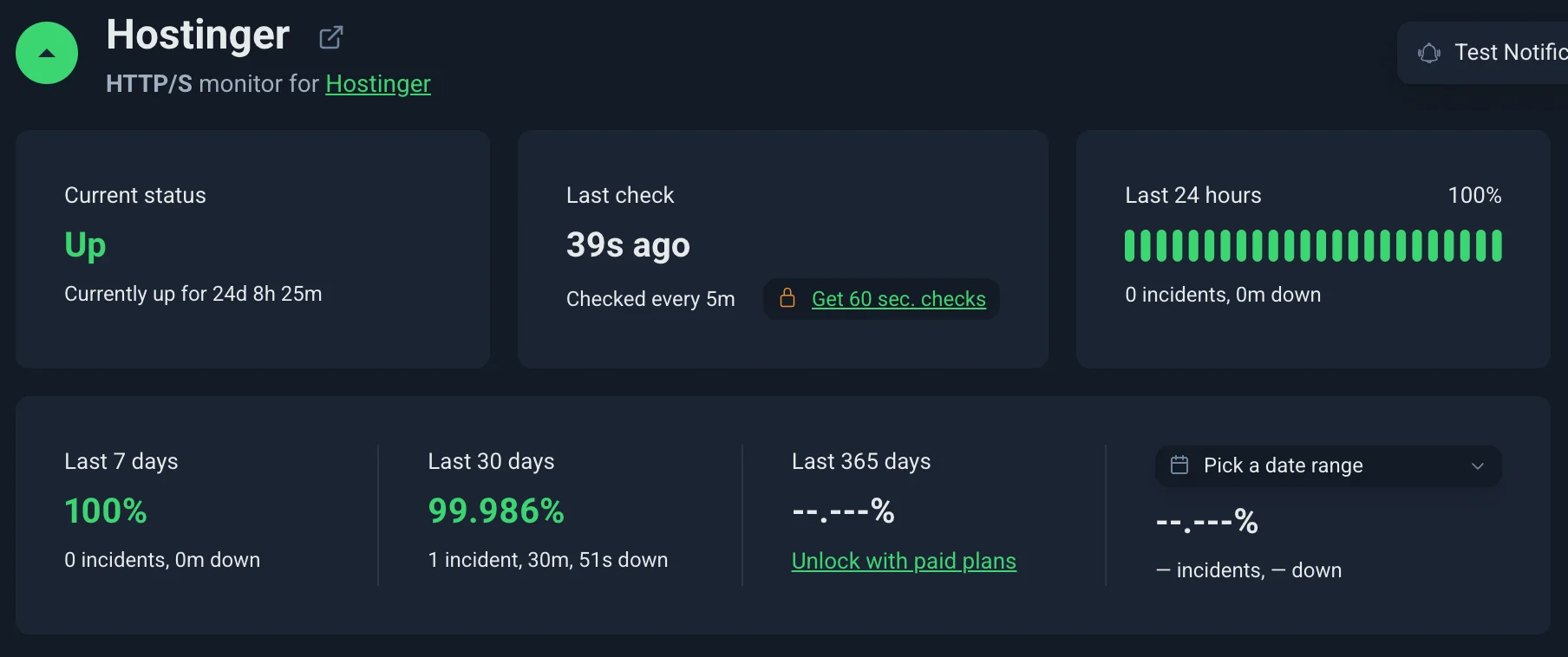 | Hostinger | Frankfurt | Beginners, startups | 70 ms | 711 ms | 920 ms | 99.98% | $4.99/mo |