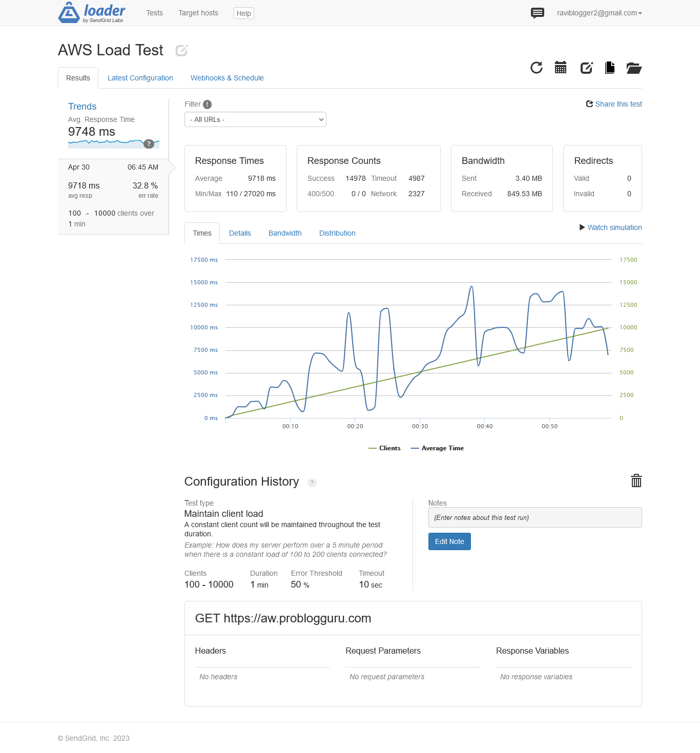 We flooded 10k concurrent users to both sites for a minute. Kamatera performed well, while AWS crawled poorly. Have a look at the test result.