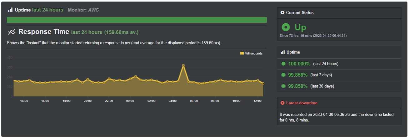 For testing both hosts’ reliability, we deployed Uptimerobot and tracked their uptime throughout 30 days.