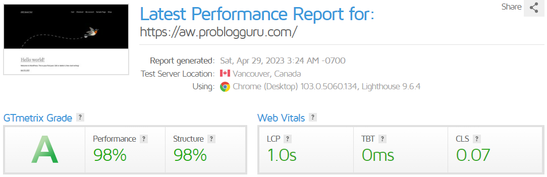 We put down both website urls in the popular GTMetrix and Page Speed Insight tools.