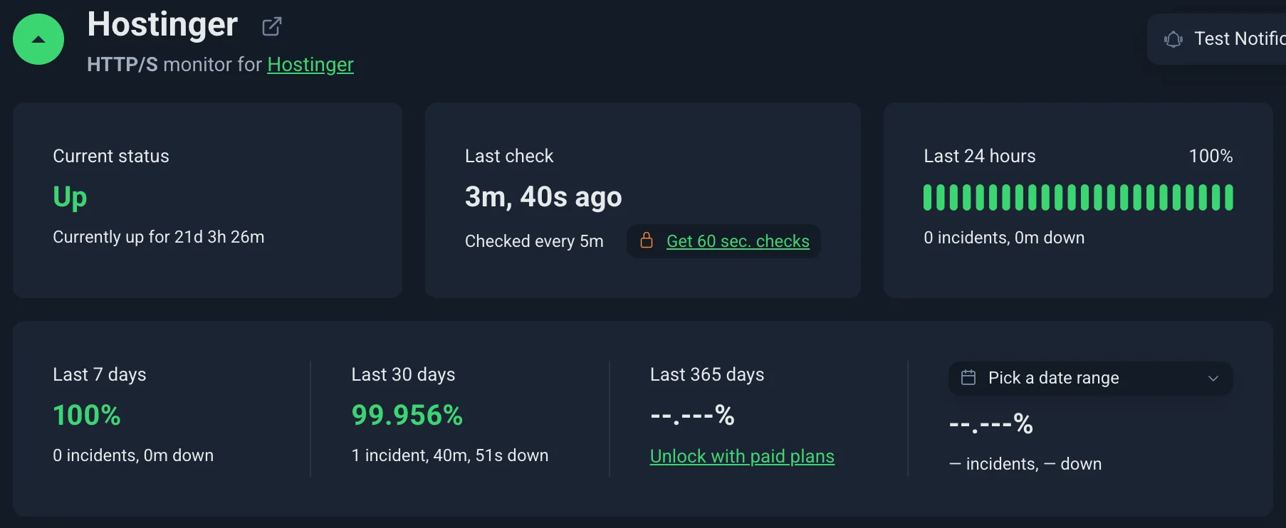 | Hostinger | Frankfurt, Germany | SSD | 90 ms | 1.1 s | 99.95% | No | Budget sites, beginners |