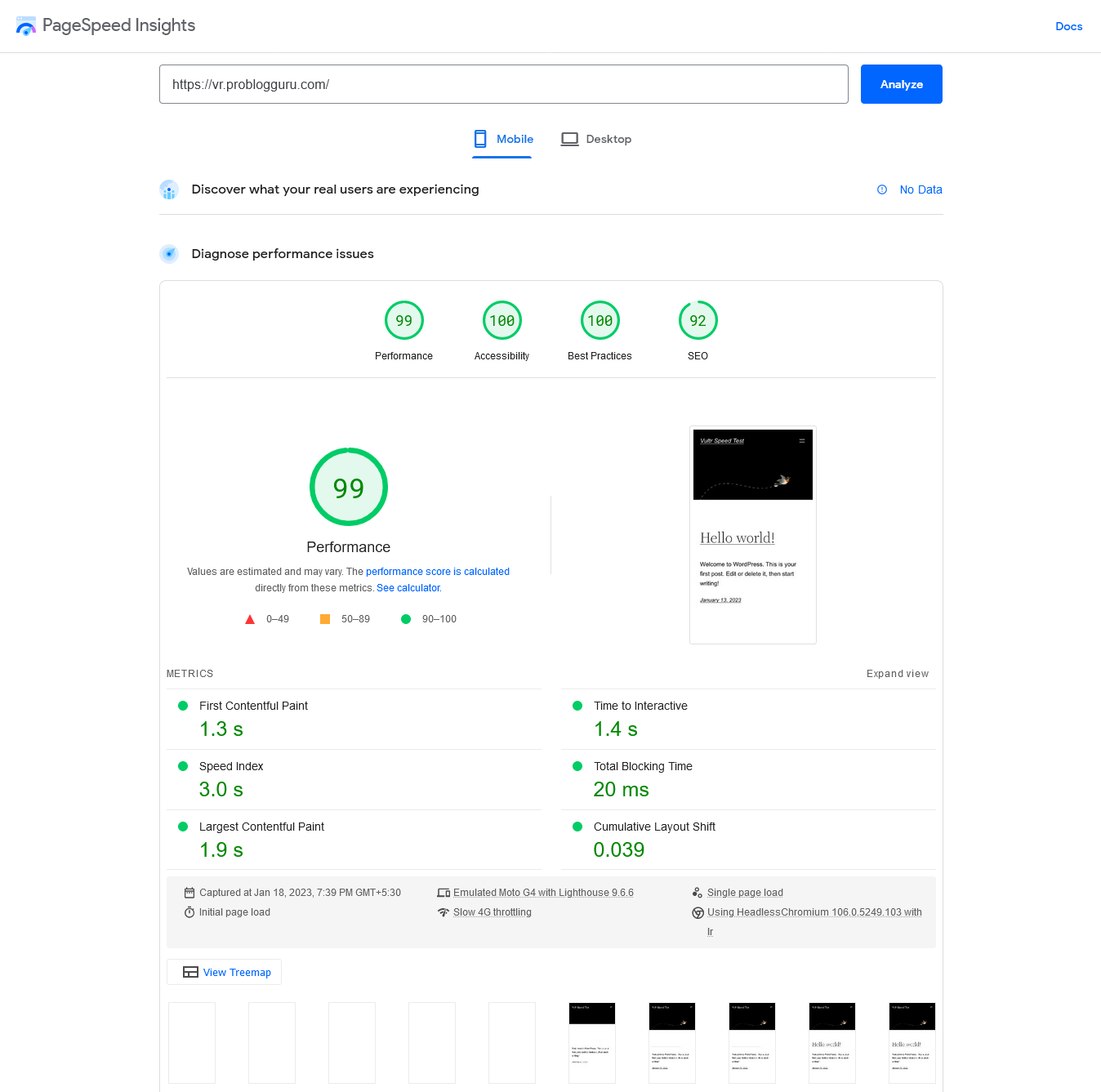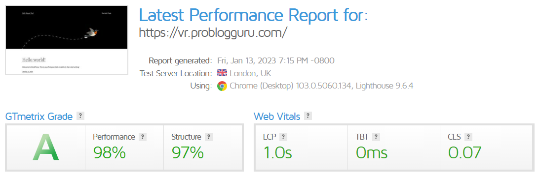 We deployed two WordPress websites on New York servers to determine the CWV score of both cloud platforms.